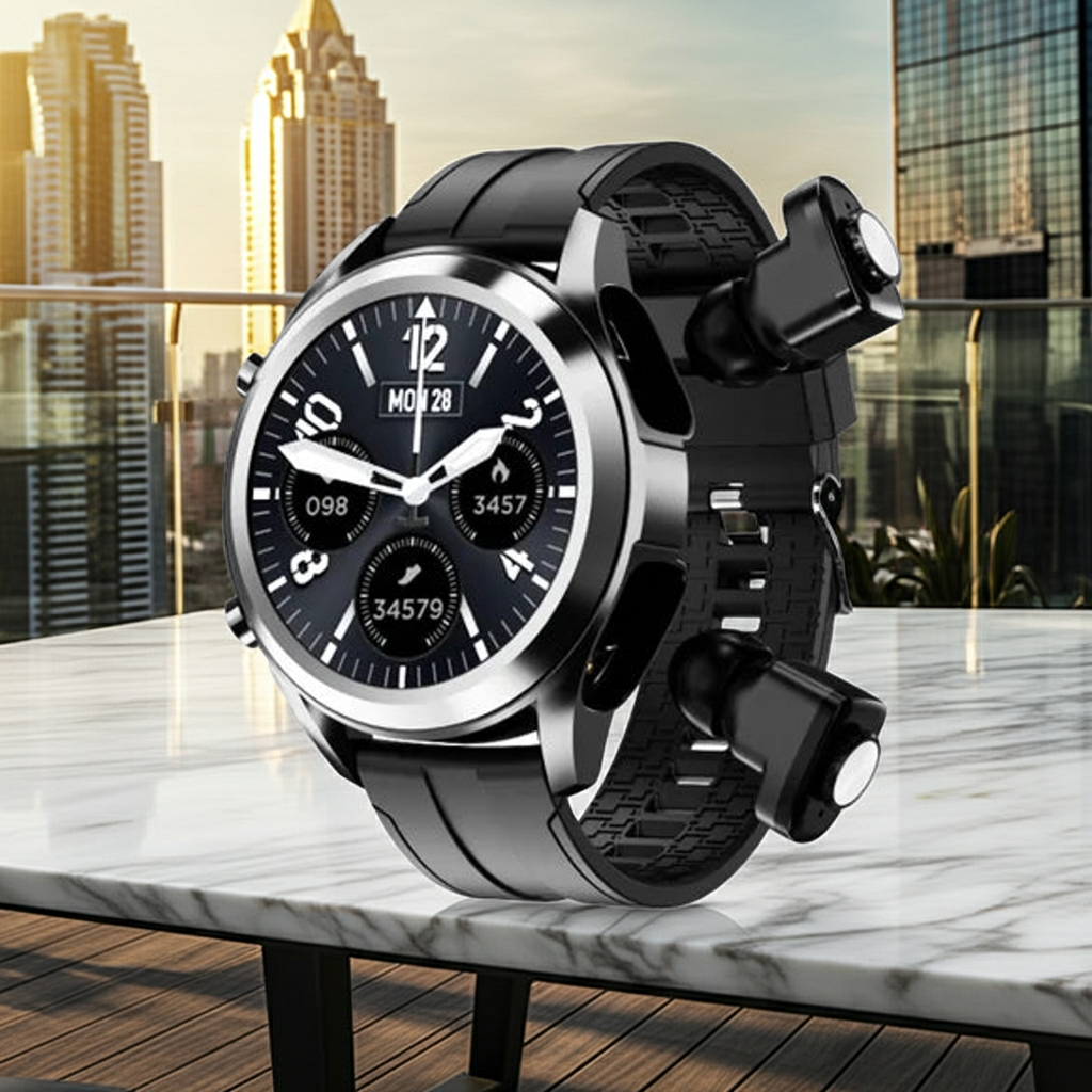 2-in-1 Smart Watch with Wireless Bluetooth Earbuds – Fitness Tracker, Music Player & Call Assistant – Waterproof Sports Smartwatch with Charging Case